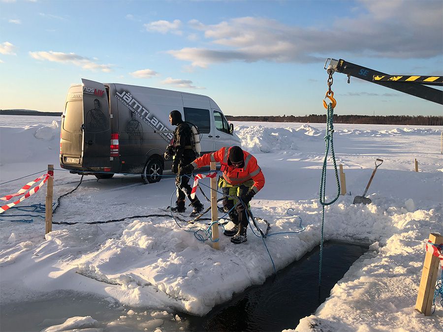 Förberedelse av undervattensinfrastruktur inför vintern innefattar issågning för att säkerställa trygg passage över isbelagda områden. Våra dykare erbjuder även underhållstjänster för problemfri drift under hela vintersäsongen.